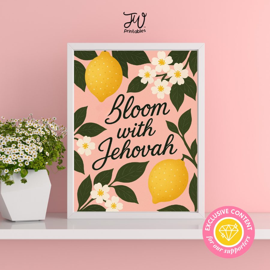 Add a burst of joy to your space with this cheerful “Bloom with Jehovah” lemon-themed art print! Featuring soft, sunny colors and a sweet botanical design with lemons and leaves, this printable serves as a gentle reminder that when we stay close to Jehovah, we truly thrive.