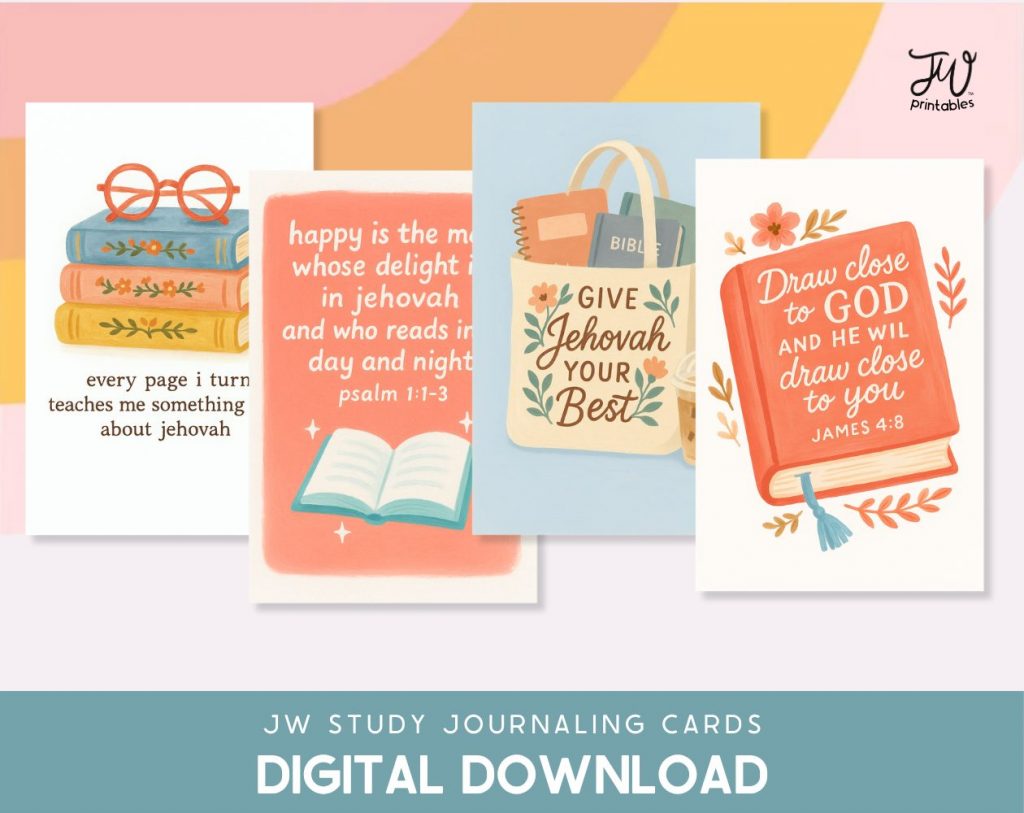 Elevate your personal study and daily encouragement with these beautifully designed JW Journaling Cards. Use them as bookmarks, notecards, gift inserts, or daily motivation cards to brighten your routine or share with friends. These make thoughtful gifts for pioneers, young ones, return visits, and anyone who loves meaningful stationery.