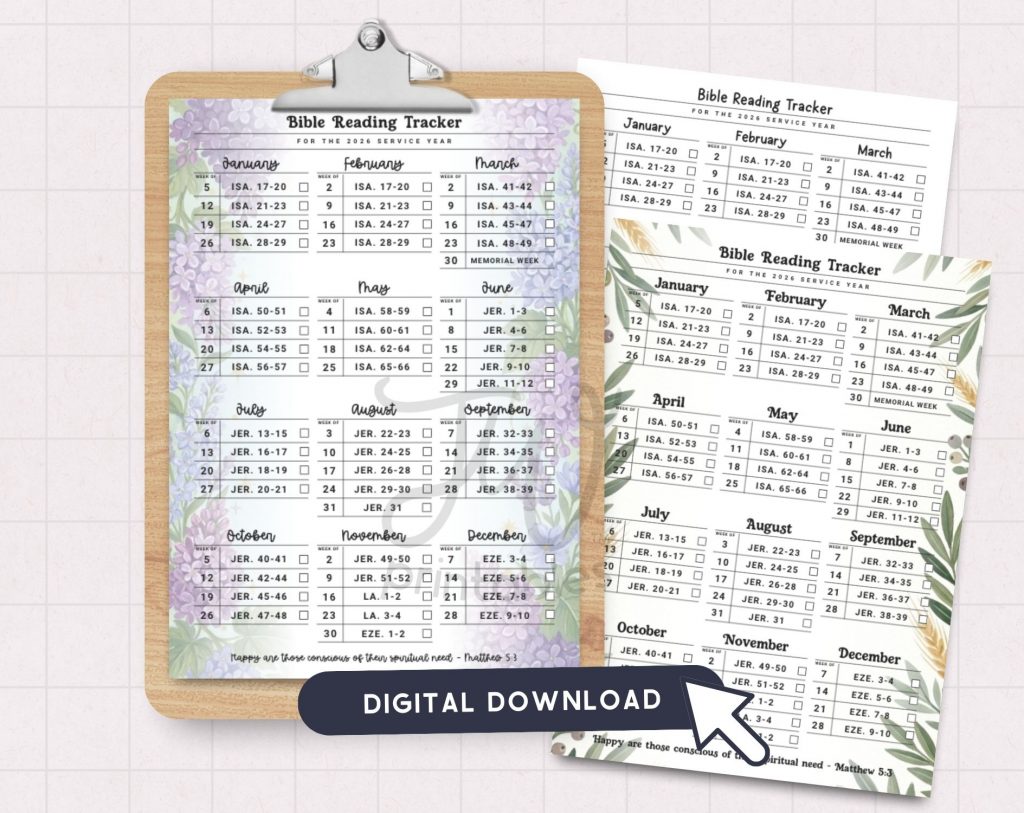 Stay on track with your Bible reading all year long with this beautifully designed 2026 Service Year Bible Reading Tracker, available in three coordinating designs to match your style.