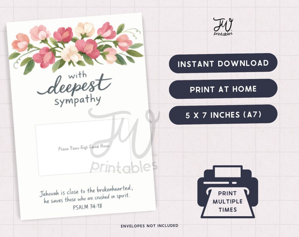 Offer comfort and compassion with this heartfelt sympathy card featuring the consoling words from Psalm 34:18 about Jehovah being close to the brokenhearted, with delicate watercolor sweet pea flowers and a built-in gift card holder.