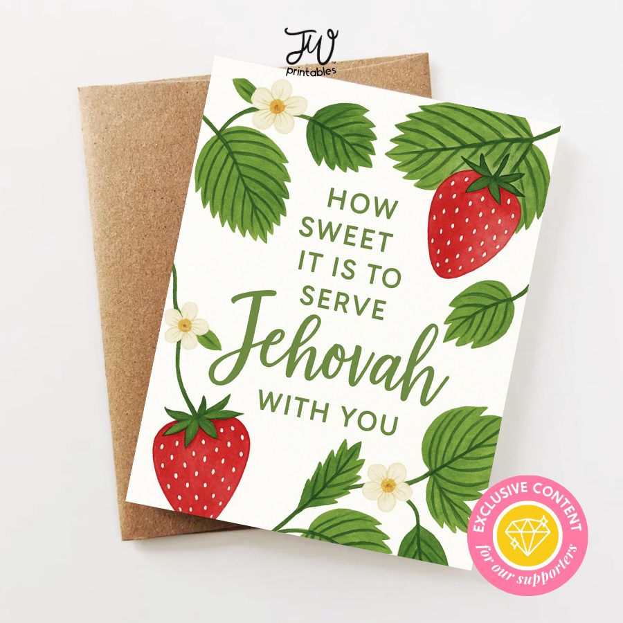 This “Sweet to Serve Jehovah with You” greeting card is bursting with cheerful strawberry charm and heartfelt appreciation. Perfect for a pioneer partner, ministry friend, or anyone who makes the work joyful, this JW printable card is a sweet reminder that serving Jehovah is even better when we do it together.
